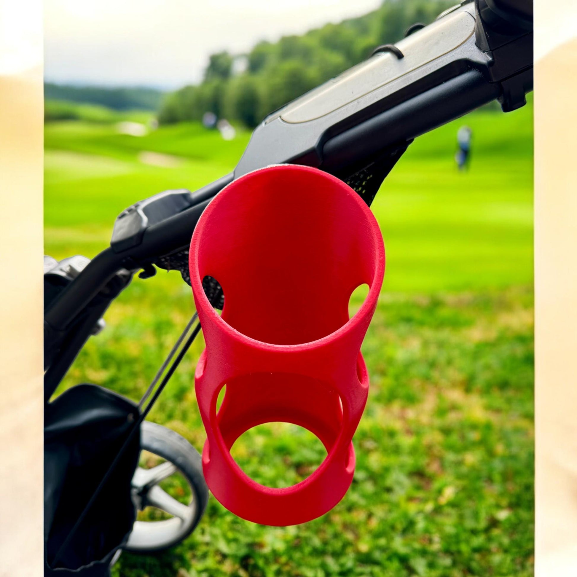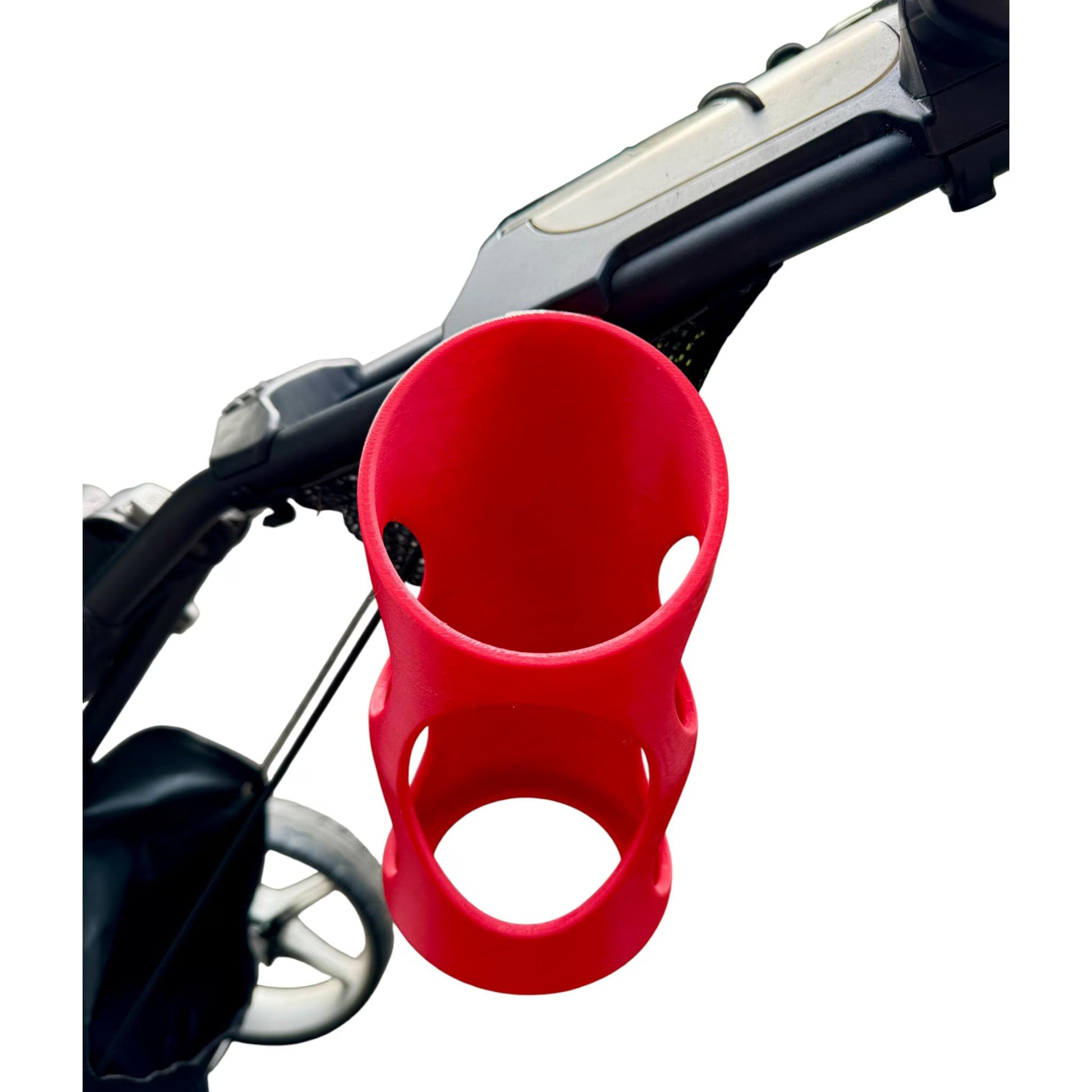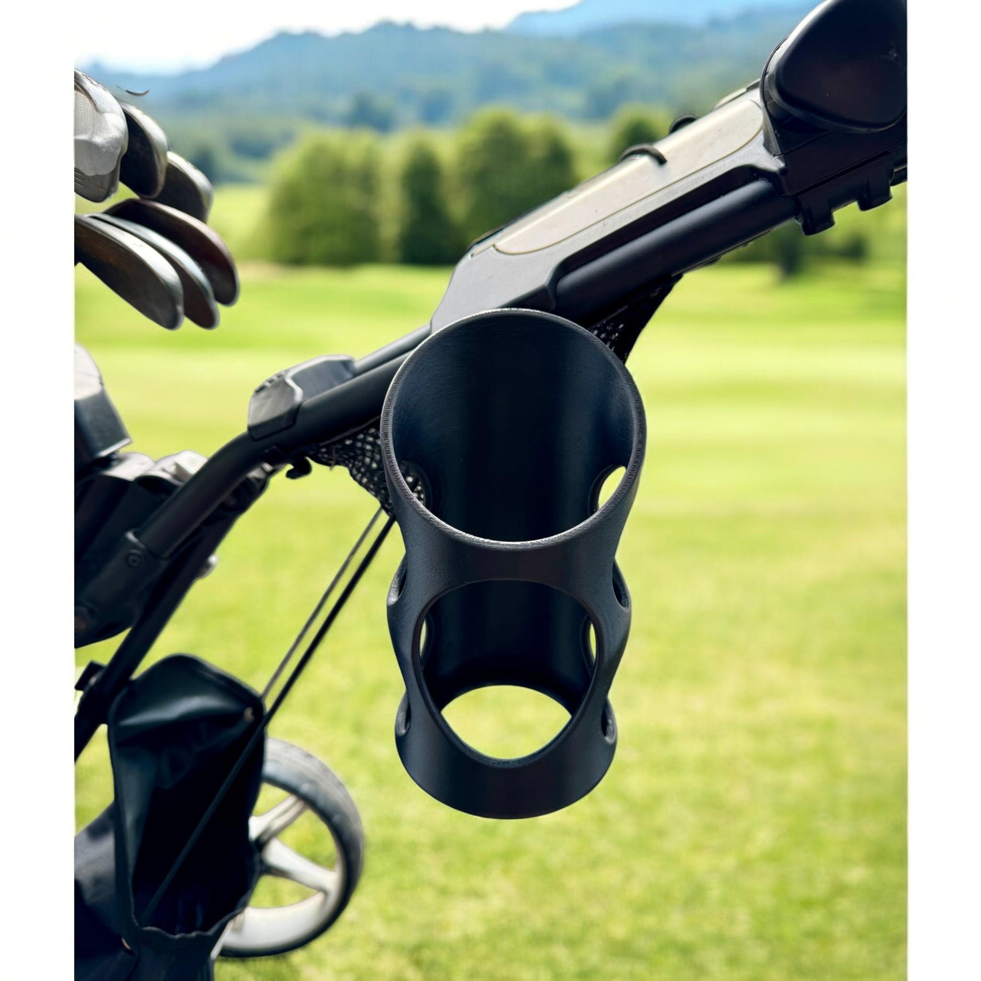 This 3D-printed bottle holder is designed to keep your drink secure and within reach on every hole. Built for Clicgear, CaddyTek, and most push carts with standard mounting holes, it installs in seconds and holds your bottle with zero wobble — even on hills or rough paths.